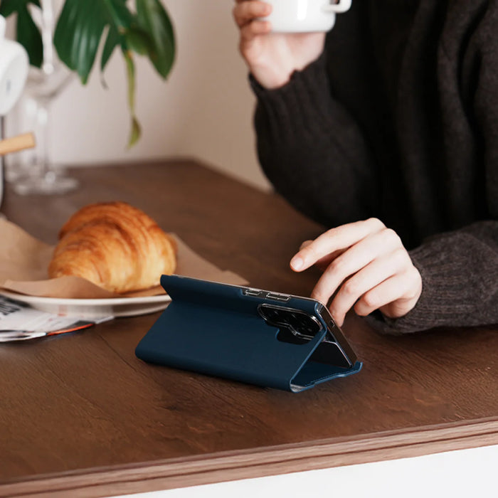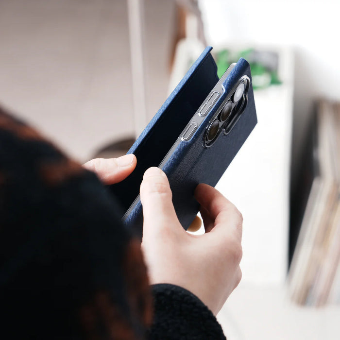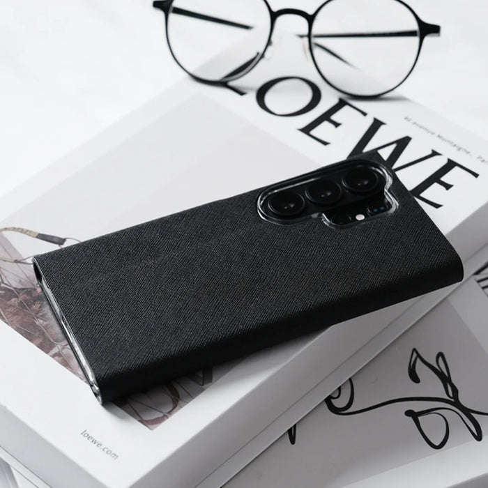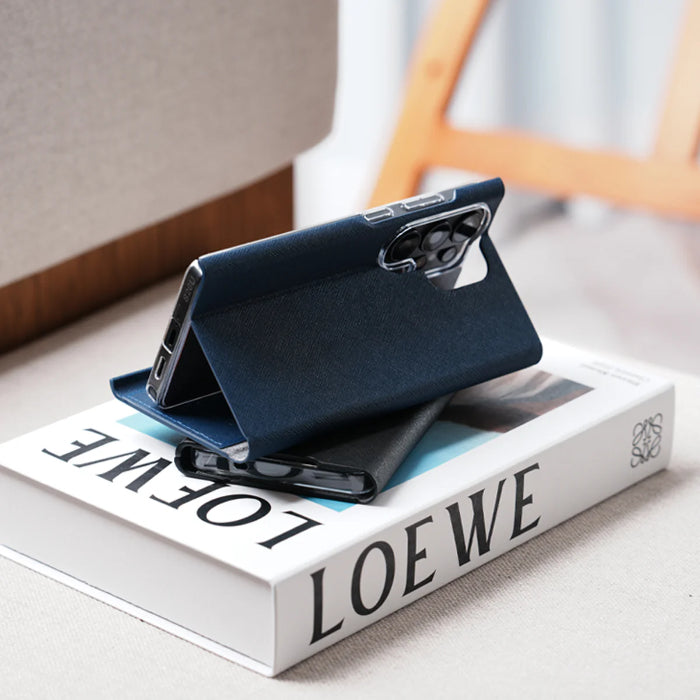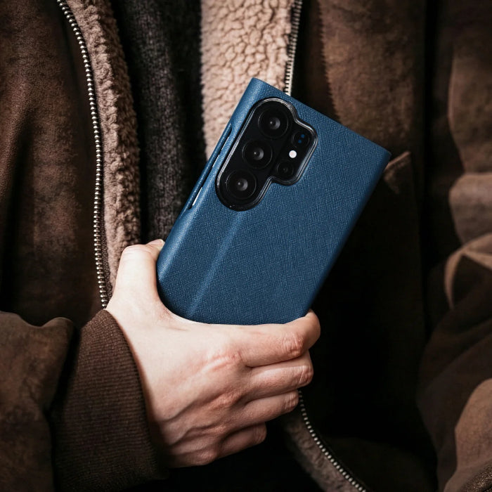 Reinforced Protection Underneath the elegant leather exterior lies a high-strength polycarbonate (PC) frame. This rigid inner shell securely holds the Galaxy S26 Ultra in place, providing robust defense against drops and side impacts while keeping the overall design lightweight.