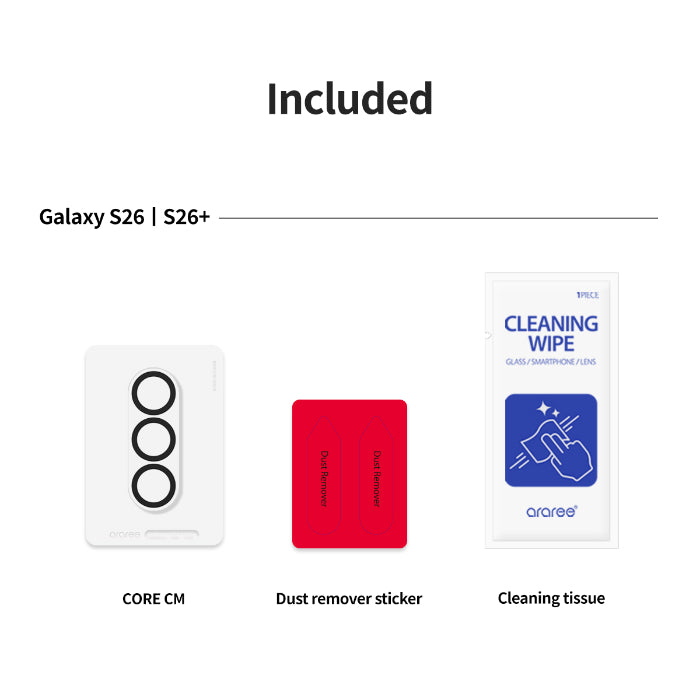 | CONTENT | 1x Araree Core Camera Lens Protector for Samsung Galaxy S26 / S26 Plus (2026) |
