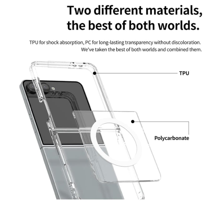 TPU for shock absorption, PC for long-lasting transparency without discoloration. We've taken the best of both worlds and combined them.