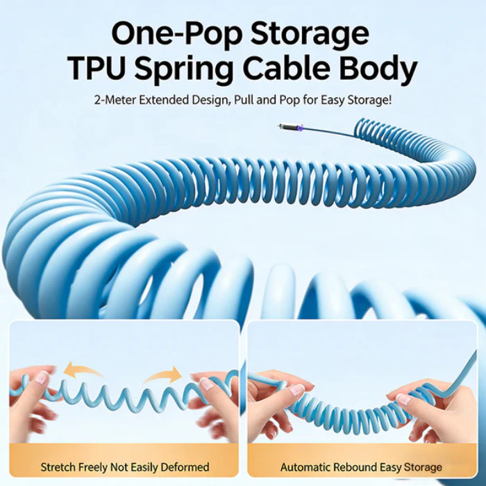 · Coiled Spring Design: 2-meter extended length that automatically retracts for easy storage without tangling.
