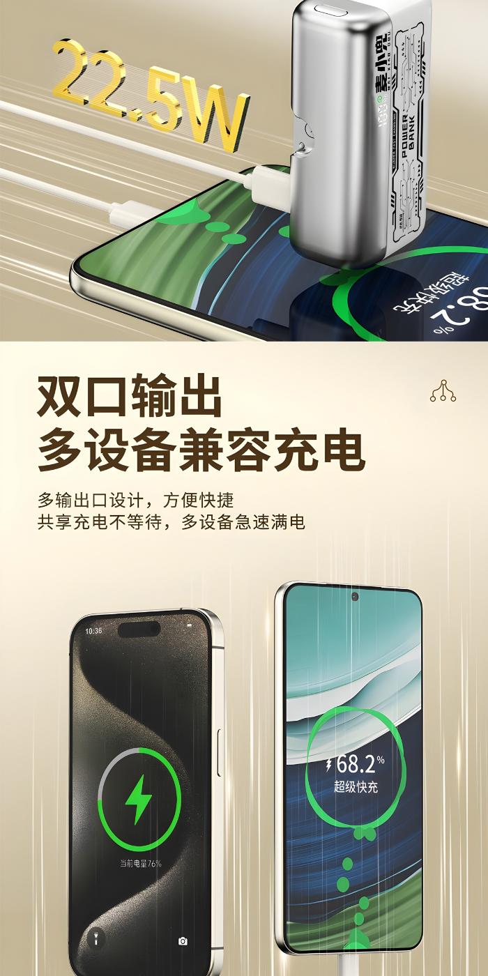 Supports Huawei, OPPO, VIVO, and other super-fast charging protocols, phone quickly fully charged.