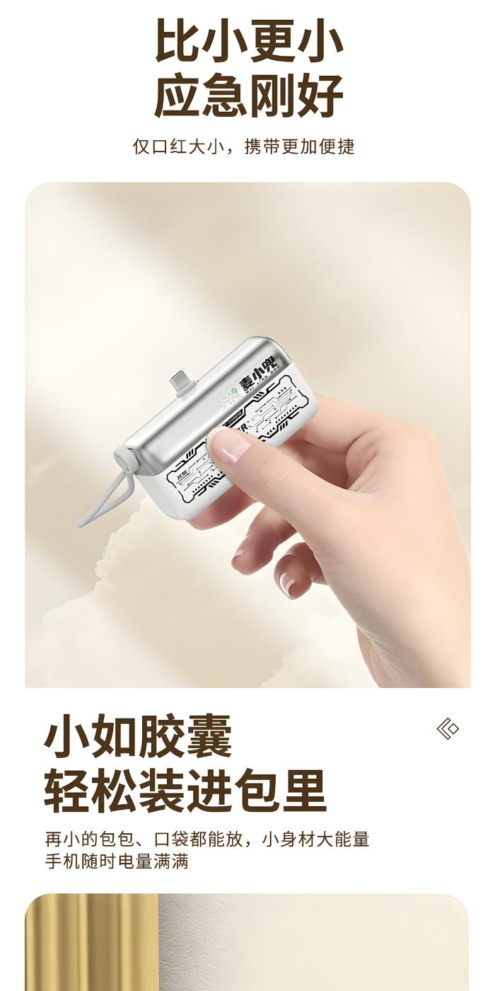 MXD G63 22.5W 10000Mah Lipstick Sized Portable Power Bank with Built-in Cable