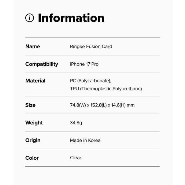 RINGKE Fusion Card Case for iPhone 17 Pro 6.3" (2025)
