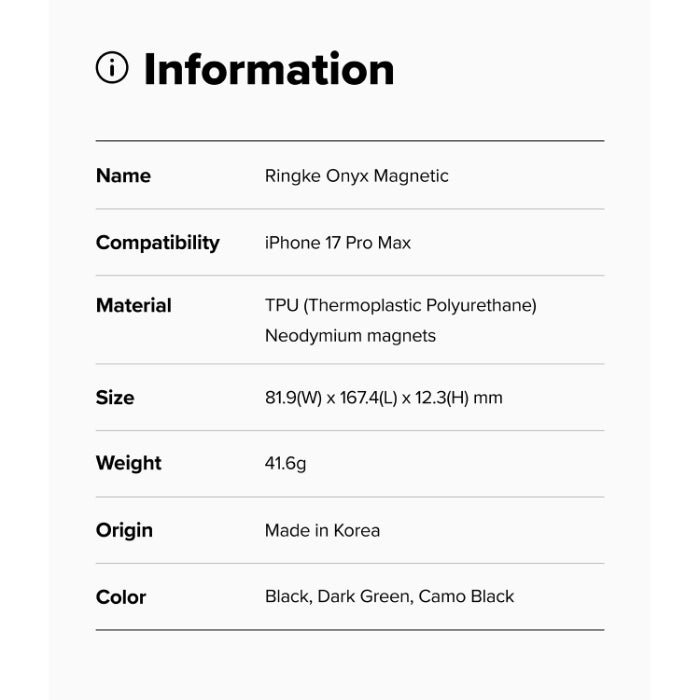 CONTENT | 1x RINGKE Onyx Magnetic Case for iPhone 17 Pro Max 6.9" (2025) |