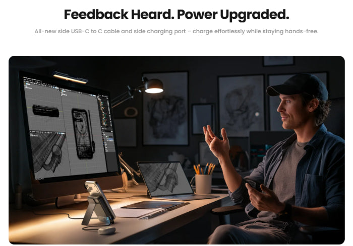 You asked, we delivered. The revolutionary side USB-C port design and side charging cable deliver an effortless charging experience that is cleaner, easier, and more comfortable.