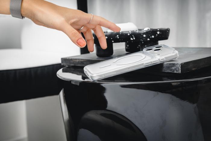 With 85% high light transmittance, offering crystal-clear transparency that restores the iPhone’s original colors. Featuring AIR-BARRIER technology, it creates a 0.3mm air cushion to effectively absorb impact and prevent watermarks, achieving true clarity without the need for dot patterns. U.S. military drop-test certified, providing extreme protection from drops as high as 16 feet. Allowing the high-sensitivity experience of camera control. Built-in magnetic ring in the M series, compatible with the entire range of MagSafe accessories.