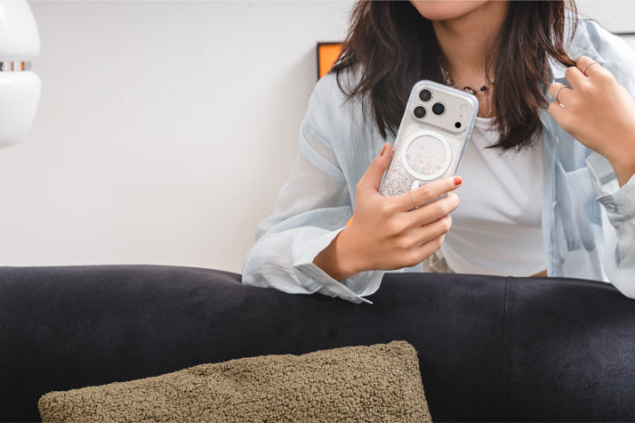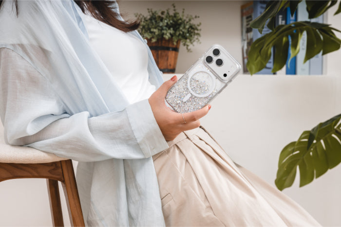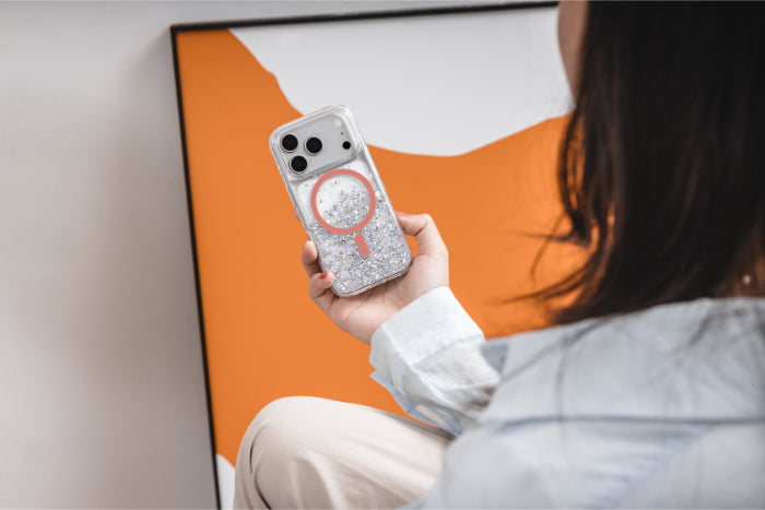 Utilizes vacuum drop glue technology, silver foil and bright powder to create a 3D dimensional visual effect. Featuring AIR-BARRIER technology, it creates a 0.3mm air cushion to effectively absorb impact and prevent watermarks, achieving true clarity without the need for dot patterns. Provides up to 10 feet of high-altitude drop protection. Enlarged camera button opening reduces accidental touches, providing a more precise user experience. Built-in magnetic ring in the M series, supporting MagSafe accessories.