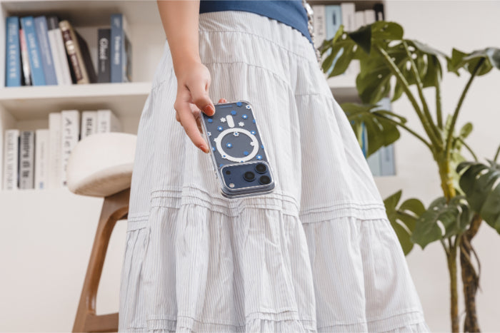 Utilizing advanced surface printing technology to offer a variety of unique pattern choices, showcasing distinctive taste. Featuring AIR-BARRIER technology, it creates a 0.3mm air cushion to effectively absorb impact and prevent watermarks. Passed US military drop test standards, providing up to 10 feet of high-altitude drop protection. Enlarged camera button opening reduces accidental touches, offering a more precise user experience. Featuring built-in magnetic rings, effortlessly compatible with the full range of MagSafe accessories.
