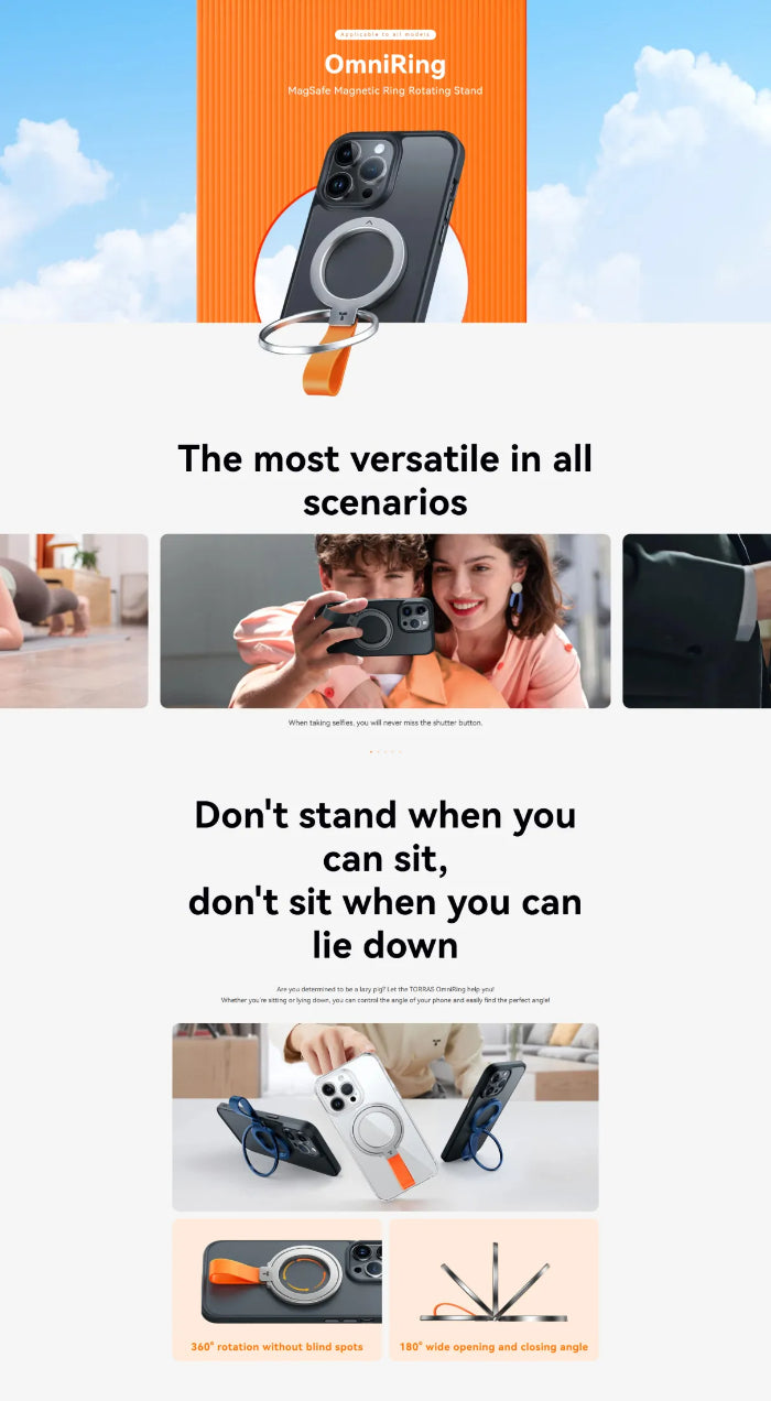 Stylish yet functional: This MagSafe ring stand is 360° rotatable and can be positioned at the best viewing angle for your phone; It's perfect to use as a phone stand when watching videos, taking selfies, texting, or just keeping your phone on the desk. The collapsible design also allows it to easily fit in your pocket when not in use