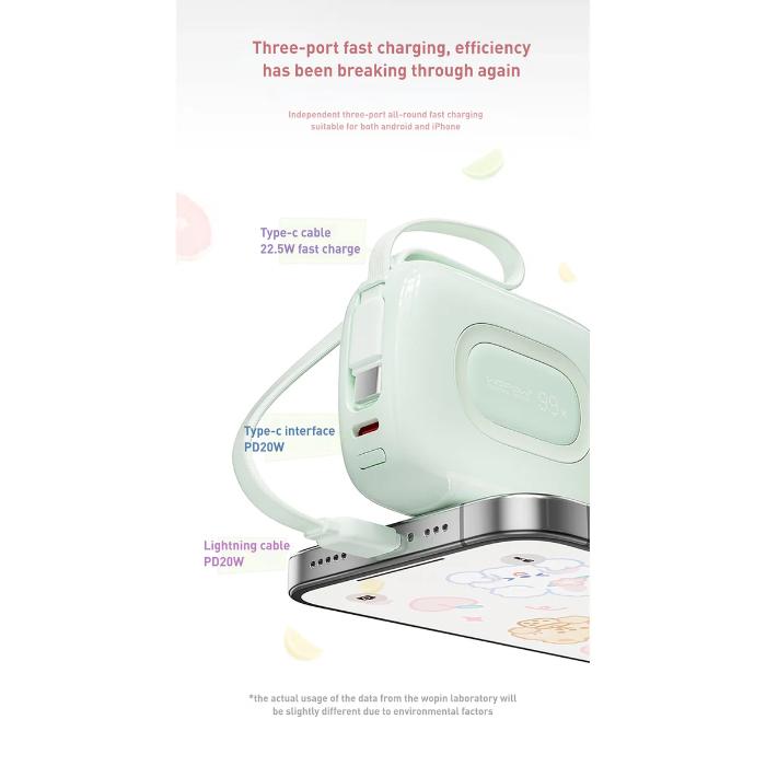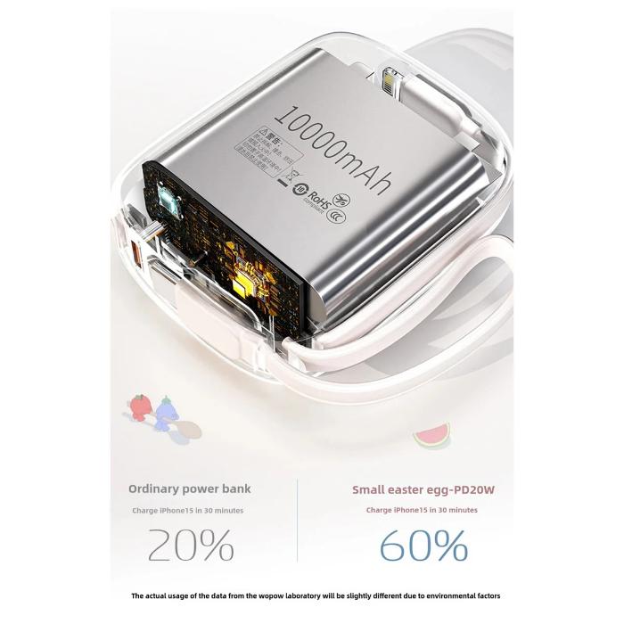 WOPOW SQ63 Mini Powerbank 10000mah With Lightning-Type C Cable